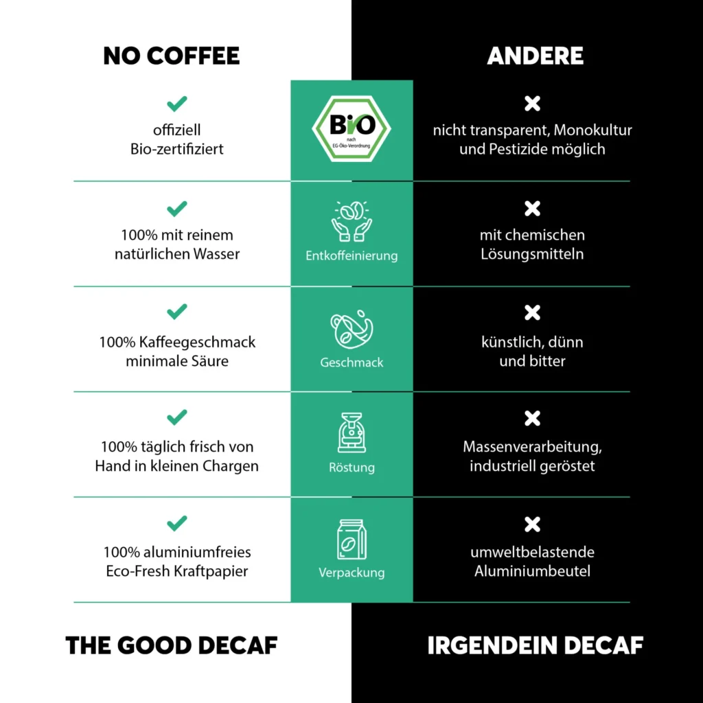 No Coffee ist zertifizierter Bio Kaffee ohne Koffein auf Barista Niveau.