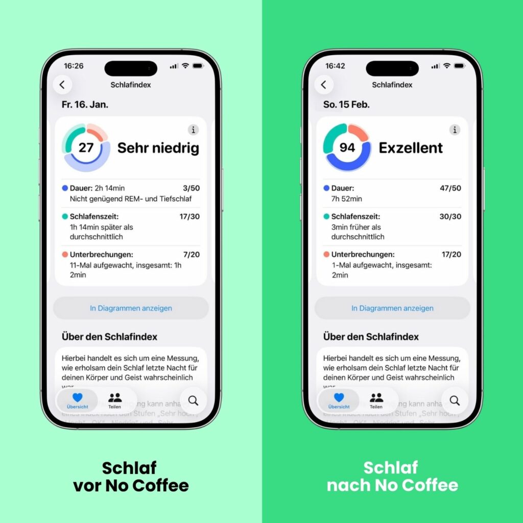 Koffein verschwindet nicht, nur weil du müde wirst. Es bleibt aktiv –