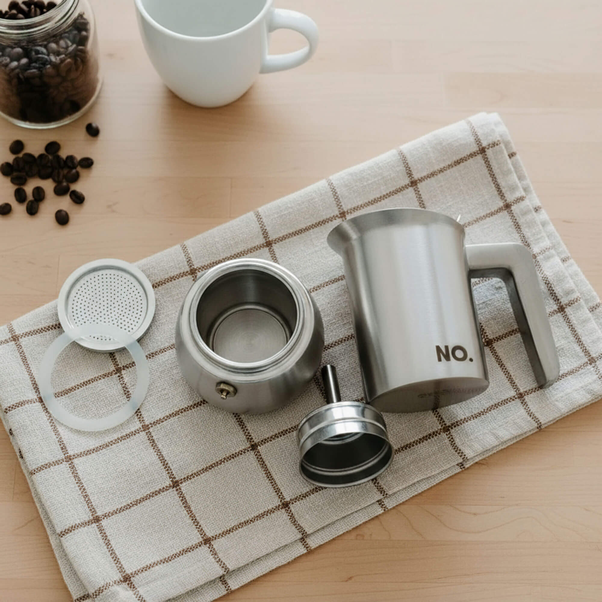 Komplett ohne Aluminium und Plastik – für reinen Geschmack und ein gutes Gefühl. Rostfreier Edelstahl, leicht zu reinigen und spülmaschinenfest. Einfach kurz ausspülen, fertig.