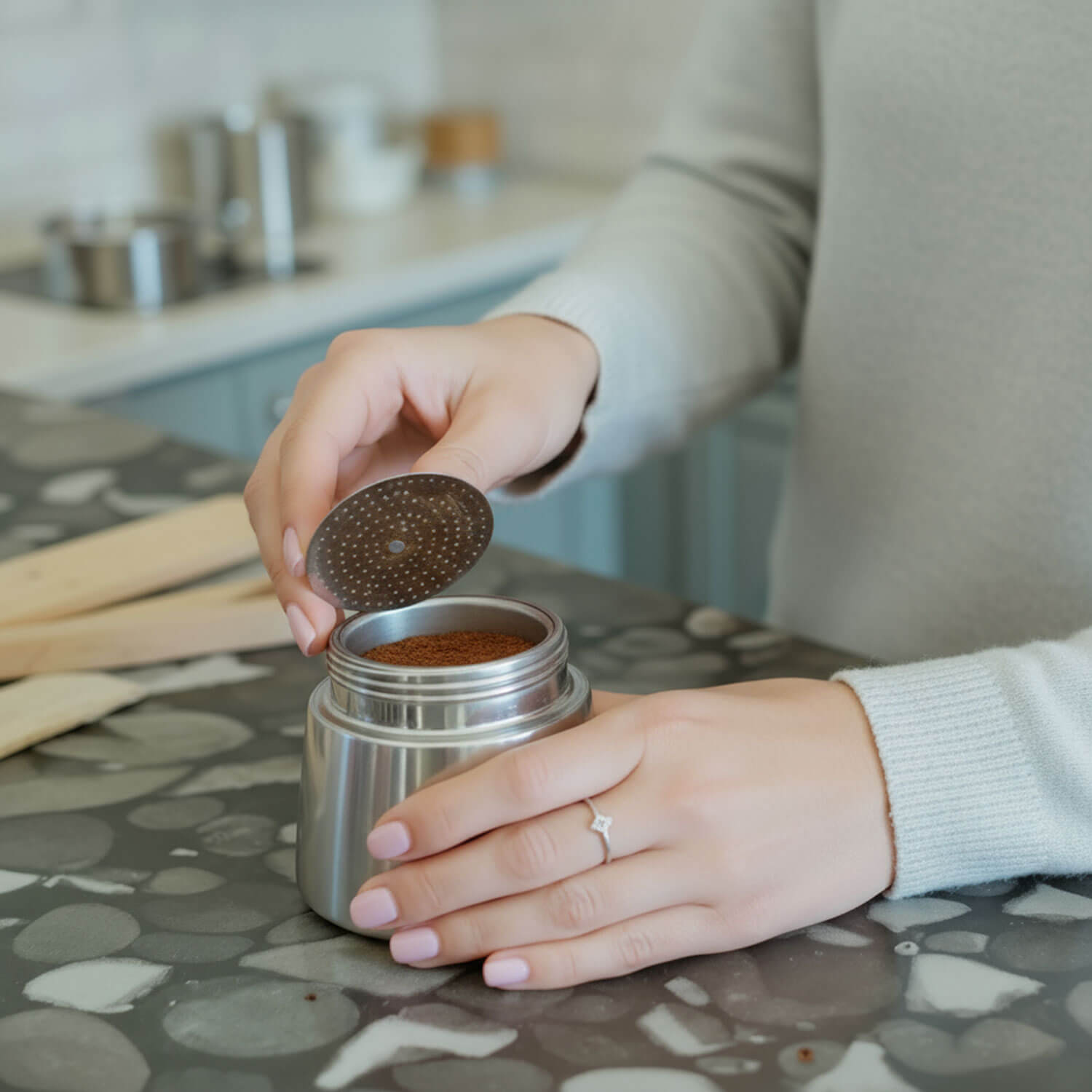 Dank des Reduziersiebs kannst du den No Coffee Espressokocher auch für den Genuss von nur 4 bzw. 2 Tassen verwenden.