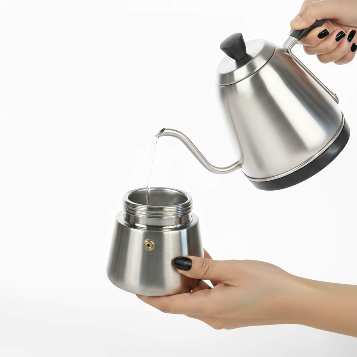 Gleichmäßige Wärme sorgt dafür, dass dein Kaffee nie verbrennt, sondern einfach schmeckt. Einmal aufgesetzt, kurz warten, durchatmen – und schon ist dein Espresso da, bevor du’s merkst.